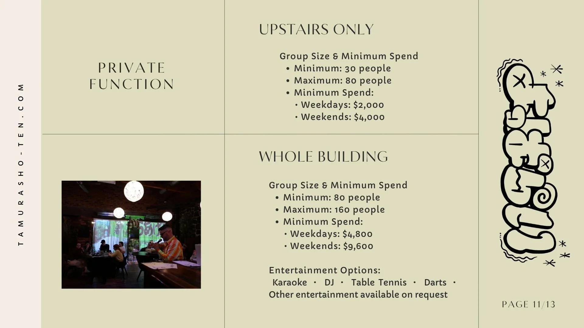 “Japanese soul, local rhythm” “Japanese soul, local rhythm” “Japanese soul, local rhythm” Function & Event PackagePerfect for casual, fun gatherings with drinks and izakaya-style tapas. contact us